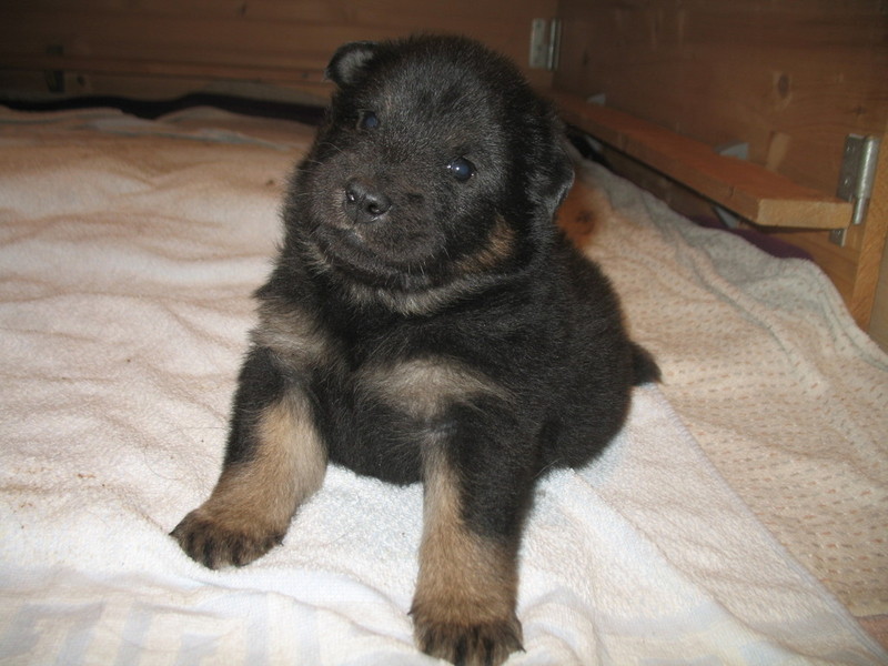 Die Entwicklung der Welpen macht schnelle Fortschritte. Die ersten Kleinen entfernen sich schon auf die Zeitung um ihre Geschäftchen zu machen, lassen sich allerdings auch noch sehr gerne von ihrer Mama nach dem Trinken das Bäuchlein lecken. Die Zähnchen brechen durch und man kann in den kleinen Mäulchen schon die Spitzen fühlen. Spielereien mit den Geschwistern werden intensiver und sie laufen schon gezielt auf etwas zu. Sie sind sehr interessiert an dem Geschehen rund um den Auslauf und die Wurfkiste.