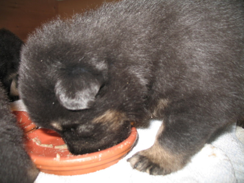 festere Nahrung. Falco hat heute 2,5kg auf die Waage gebracht. Die beiden Hündinnen haben jede exakt 2,22kg.
