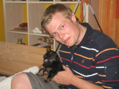 Heute ist viel passiert: Fammy`s zukünftiges Herrchen, Yannick auf Hannover, war zu Besuch und auch Mara, völlig vom Eurasierwelpenvirus infiziere Besucherin war wieder mal da. Hauskatze "Lucky" hat Kontakt mit den Welpen aufgenommen und schließlich wurde die Wurfkiste erweitert, damit die Welpen nun einen größeren Spielplatz haben.